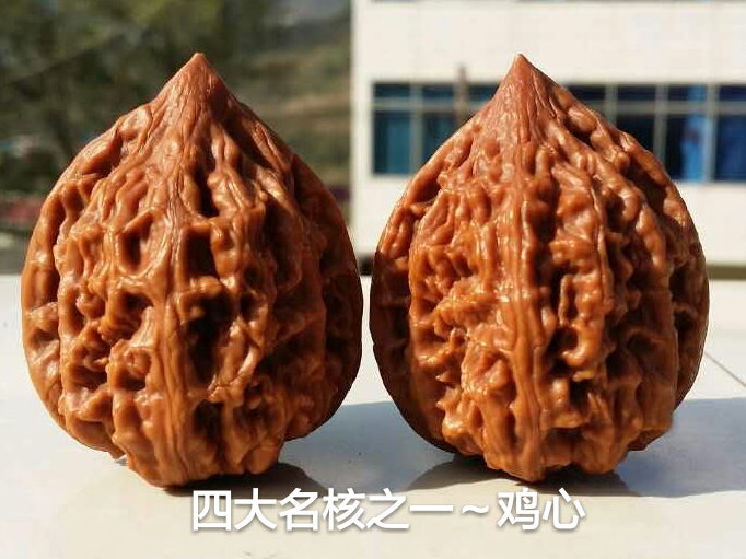 坚果外壳呈三角形,似“鸡心”形状,坚果大、果底小,桩高,果顶大而突出,壳面多粗直纹,纹路较深
